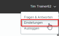 Dies erfolgt mit Klick auf den Namen des angemeldeten Benutzers rechts oben, dann über die Auswahl „Einstellungen".