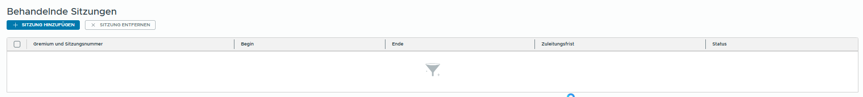 - Sitzungsstatus: Der Sitzungsstatus gibt Auskunft, ob die Sitzung vorbereitet wird, bereits dazu eingeladen wurde, sich die Sitzung in Nachbearbeitung befindet oder abgeschlossen ist