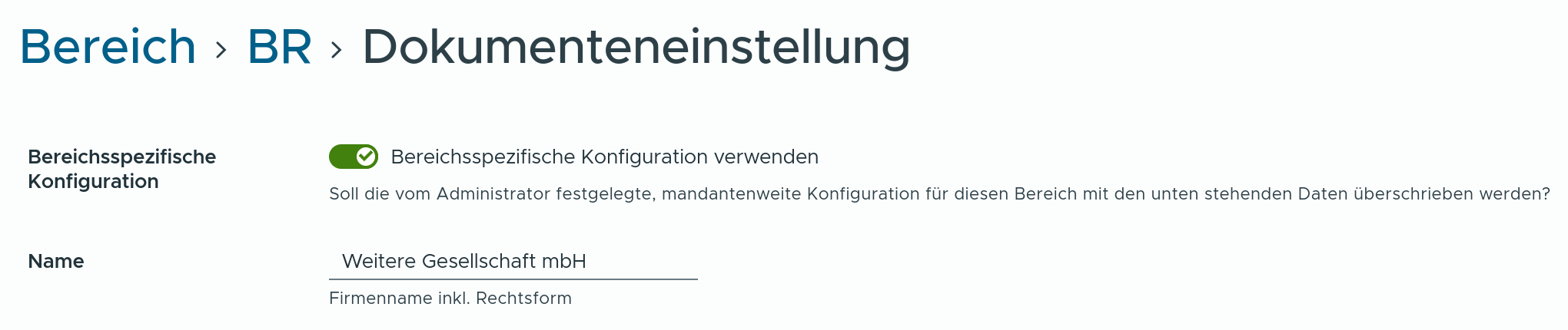 Eine feingranulare Konfiguration der Dokumentengenerierung ist je Bereich möglich