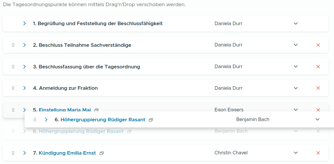 Das Verschieben von Tagesordnungspunkten per Drag'n'Drop